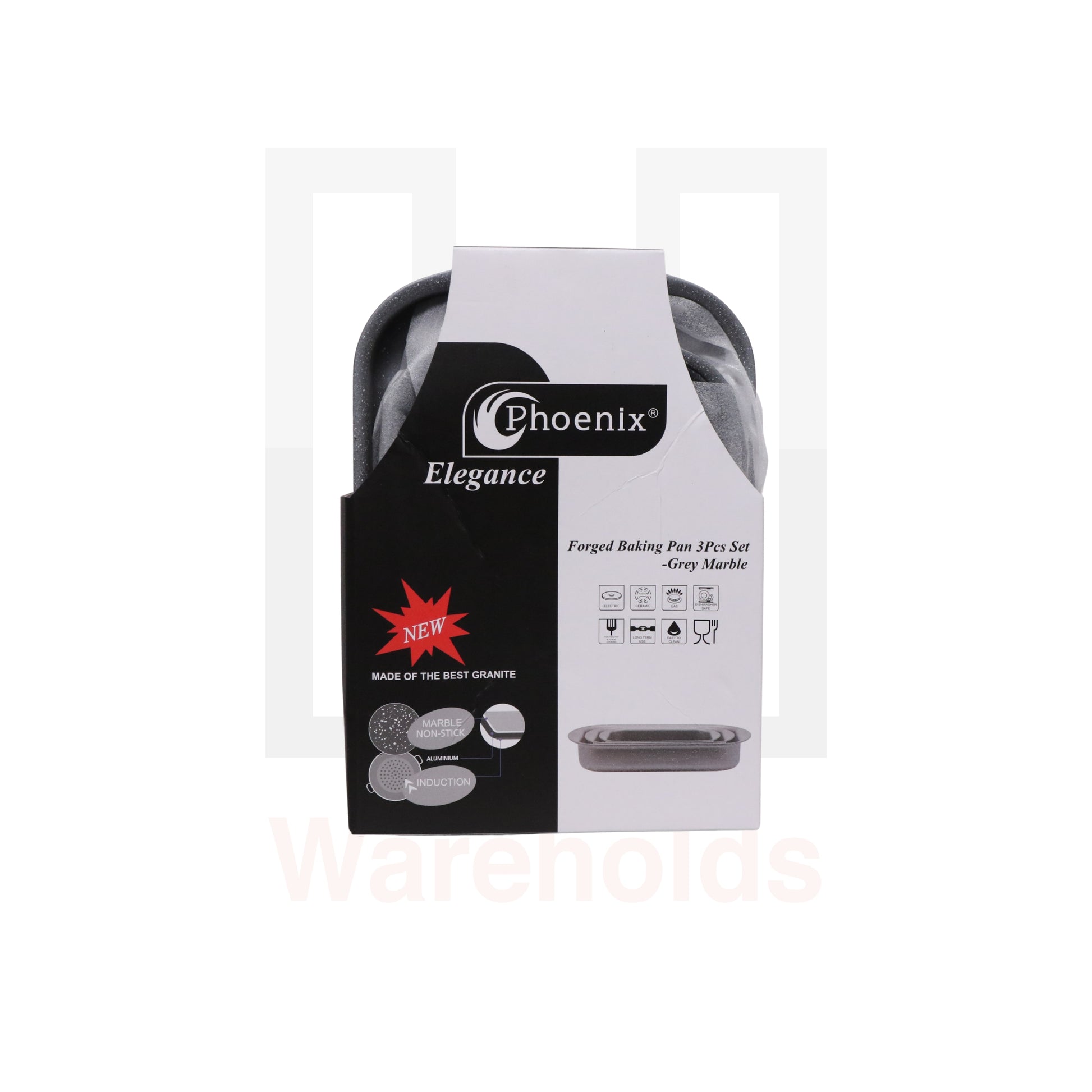 Phoenix 3 Pcs Rectangular Grey Marble Forged Baking Pans Set